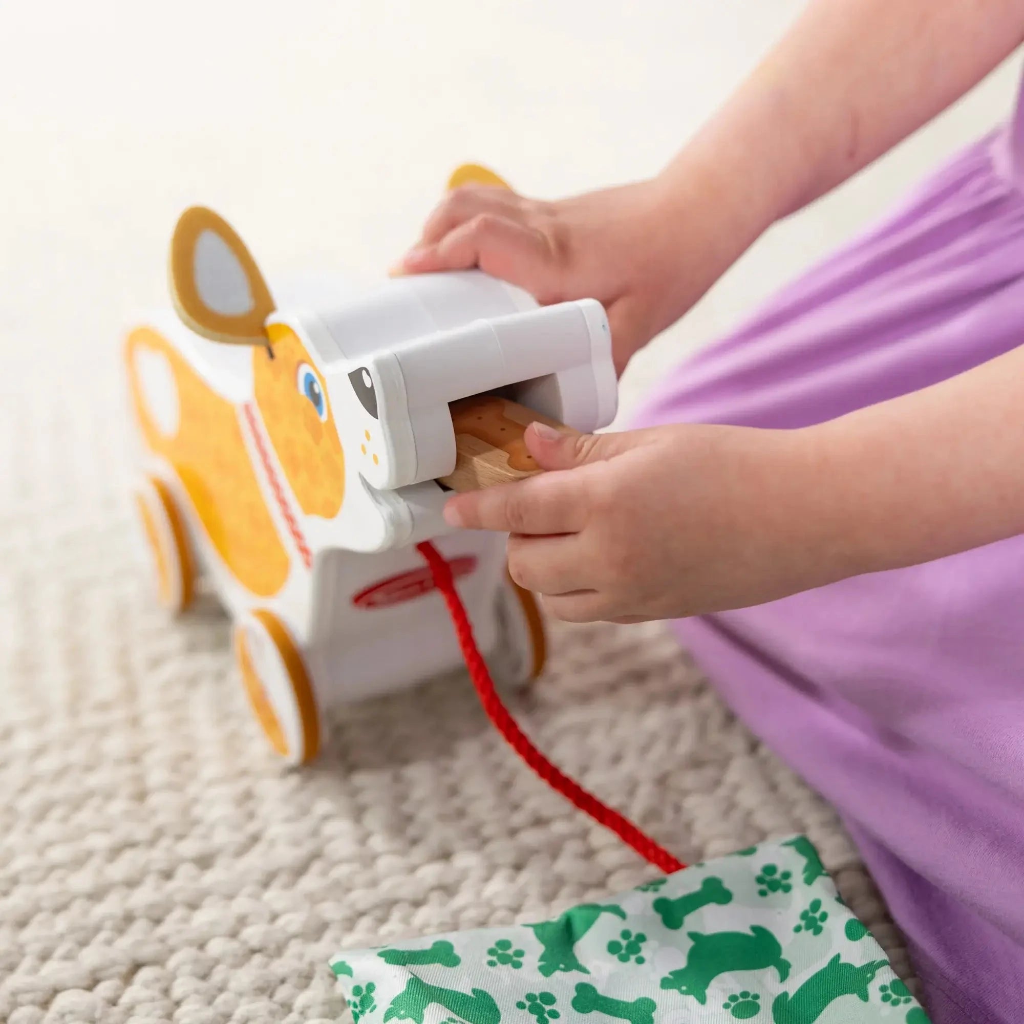 Get ready for a puppy experience like no other! The Melissa & Doug Pooping Puppy brings interactive play to life. Feed your wooden puppy, take it for a walk, and watch as it "poops" for an engaging, funny, and imaginative adventure. Perfect for kids who dream of caring for their own pet!