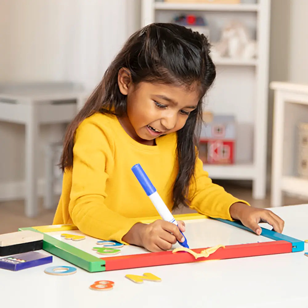 Review and buy the Melissa and Doug Uppercase Magnetic Chalk and Dry-Erase Board at Maziply Toys today.