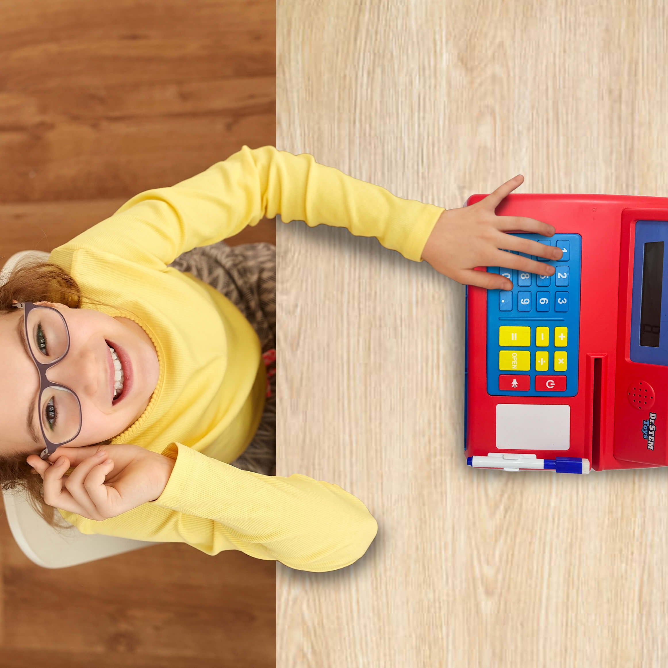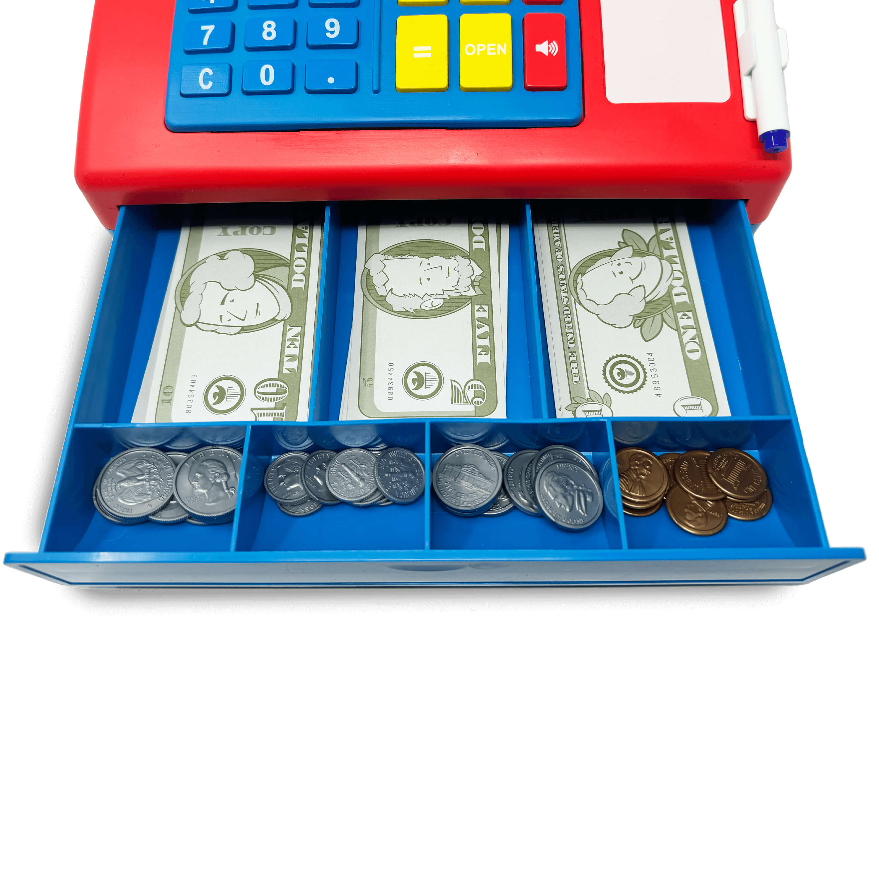 Children can engage in imaginative play by simulating real-life transactions, enhancing their understanding of money management. The built-in write-and-wipe board, along with the included dry-erase marker, allows kids to practice writing numbers and calculations, further reinforcing their math skills. The large buttons on the calculator are designed for small hands, ensuring ease of use for young learners.
